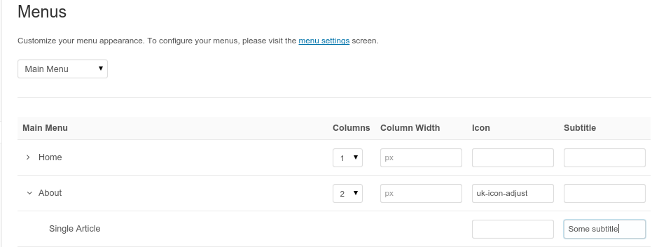 Warp has a great tools menu management and its display. The user can customize the behavior of pop-up menu, add a subline to the items and icons. Just to bring a beauty. All of this we can do without any plugins. All of this is inside the template.
